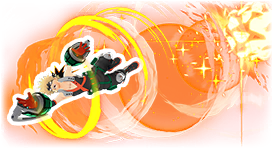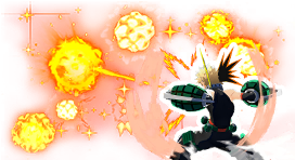 ![]() 爆発の推進力で 錐揉み回転しながら突進する 突進中に 再入力か最大距離で 大爆発を叩き込む 突進中は 移動操作で曲がることができ 軌道上を爆発させながら進む |